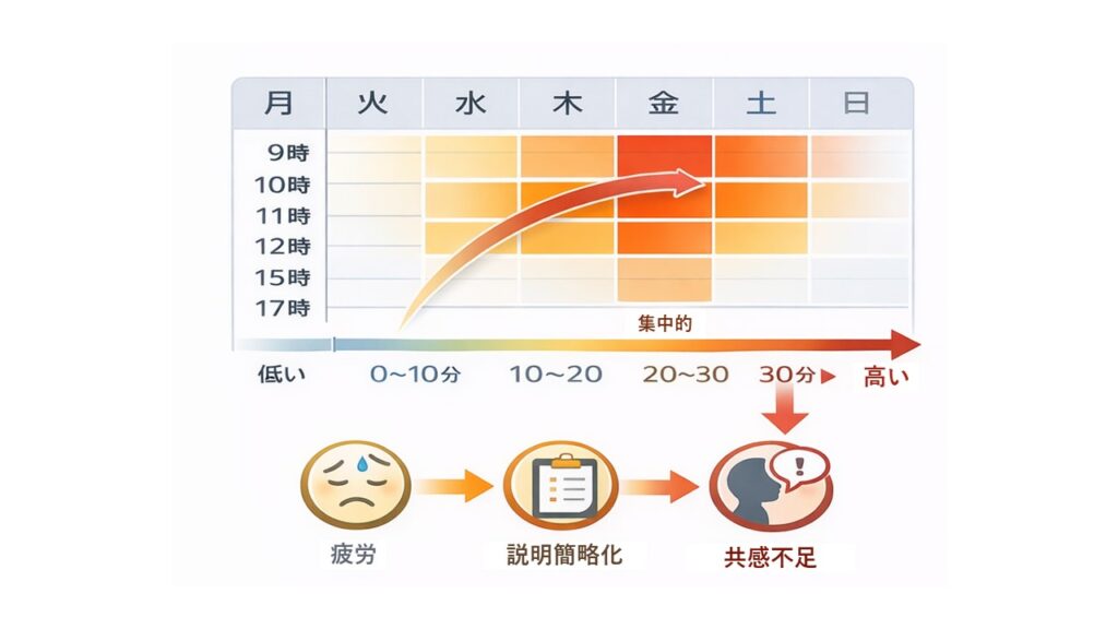 患者対応の現場を、業務フローや判断構造の観点から継続的に見てきた。