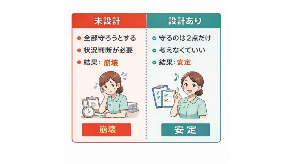 忙しいほど頑張らせる設計は、必ず崩れます。